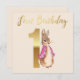 Pedro el Conejo con un oro número uno para ese primer cumpleaños especial.