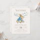 Este acogedor conejito invita a bañarse en una ducha de bebé Peter Rabbit, con su carácter clásico en las acuarelas suaves. Los tonos azules, de menta y dorados son los elementos más destacados del diseño, lo que le da un toque alegre y festivo. El querido Peter Rabbit se sienta en la parte de abajo, creando un ambiente atemporal perfecto para una ducha inspirada en un libro de cuentos. El texto de personalizable facilita la personalización con todos los detalles importantes para su día especial. Ideal para reuniones relacionadas con el jardín, duchas de primavera o fans de Beatrix Potter. Palabras clave