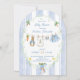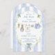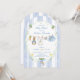 ¡Una entrega encantadora del Jardín del Sr. McGregor! La invitación se compone de un marco pintado a mano, personalizado, de un estribillo vertical azul y nítido, acentuado por una corona de vegetación exuberante, que crea un aspecto limpio, clásico y acogedor. En el centro, un tendedero de acuarela dulce adorna con orgullo pequeños objetos adorables, cada uno de ellos sutilmente pintado por Peter Rabbit. La escena se completa con una preciosa proa azul sosteniendo un ramo de zanahorias frescas, y daffodils alegres y brillantes, todas ellas representadas en un suave estilo acuarela. Añada fácilmente sus propios detalles y cambie el estilo de fuente, el tamaño del color y la posición si lo desea. ¡Esta invitación es un gran placer, invitando a sus invitados a compartir la expectativa "empapada" de la llegada de su bebé!