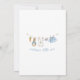 ¡Una entrega encantadora del Jardín del Sr. McGregor! La invitación incluye una acuarela dulce colgada en el centro, que exhibe con orgullo pequeños objetos adorables, cada uno con sutileza de Peter Rabbit. La escena se completa con unos bonitos arcos azules que sostienen dos racimos de zanahorias frescas en una suave acuarela. Añada fácilmente sus propios detalles y cambie el estilo de fuente, el tamaño del color y la posición si lo desea. ¡Esta invitación es un gran placer, invitando a sus invitados a compartir la expectativa "empapada" de la llegada de su bebé!