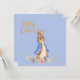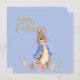 Peter el Conejo en un fondo azul con el texto de oro "Feliz Pascua".