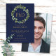 Con una moda de vegetación botánica y una tipografía clásica de oro sobre un fondo azul marino, esta elegante invitación a graduación de doctorado puede ser personalizada con tu foto de grado al revés. Diseñado por Thisisnotme©
