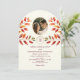 This arched fall wedding invitation blends rustic elegance with modern details. Featuring watercolor autumn leaves, a round photo of the couple, and a QR code for easy RSVP, this unique design is printed on both sides. Guests can also access your wedding website directly from the back. Perfect for cozy September, October, or November weddings with a romantic, seasonal vibe.