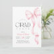 Celebrate your graduation in style with this photo pink bow graduation ainvitation. The design features a beautiful watercolor pink bow with flowing ribbons, perfectly complementing the modern script text that announces the graduate's name and party details. This invitation is ideal for a high school or college graduation party, adding a touch of sophistication and charm to your special event. Make your graduation celebration unforgettable with this unique and stylish invitation.