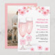 Invitación Photo Pink Floral Petals & Prosecco Bridal Shower