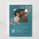 This elegant wedding invitation features rose gold line art flowers on a teal background. With a custom photo and a scannable qr code for your wedding website on the backside.