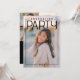This editorial-style graduation party announcement features a bright, photo-forward design that showcases the graduate with multiple images for a polished and celebratory look. The front highlights a large smiling portrait framed by clean lines and bold “Graduation Party” typography, creating a refined yet approachable feel. The coordinating back includes space for additional photos along with party details arranged in a clean, easy-to-read layout. Designed for high school or college graduates, this PhotoPop-style announcement is fully customizable with name, school, year, and event information, making it a stylish way to invite friends and family to celebrate this milestone.