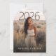 This modern graduation announcement template features a clean arched photo layout paired with minimalist typography for a timeless, elevated look. The front highlights a large statement photo with space for a customizable class year, graduate name, and school, creating a polished and professional presentation. The back includes room for an additional photo along with editable graduation party details, allowing you to share both the announcement and celebration in one cohesive design. Ideal for high school or college graduates, this versatile photo-focused template offers a stylish way to commemorate any graduating class.
