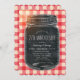 Invitaciones de picnic para aniversario de bodas de 25 años Vintage Rústico. Personalizadas con los detalles de su celebración. Se puede cambiar a aniversarios de 10, 20, 30, 40, 50, 60 años, etc. Cuenta con una ilustración creativa de frasco de mason sobre un fondo de mantel vintage. Una hermosa tipografía de texto - se puede editar. Excelentes invitaciones de aniversario de bodas para picnic rústico, campo u otros aniversarios. Esta invitación de aniversario de bodas está diseñada por superdazzle.com