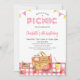 Invitación al cumpleaños de chica Cute con tema de picnic Plaid Pink Summer Picnic Basket, con algunas banderas de racimo, un patrón de manto rosado, encabezamiento decorativo de yeso y varios artículos de picnic. Este chica cualquier invitación de cumpleaños para picnic de edad es ideal para una fiesta de cumpleaños de verano al aire libre.