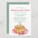 Esta invitación a una fiesta personalizado incluye un Picnic en el tema del Parque. En la parte inferior, encima de un mantel de cuadros rojos y blancos, se retrata una bonita cesta de picnic y fruta a la acuarela. Delante se colocan un par de fresas y una jugosa sandía.