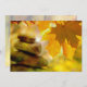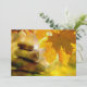 Una fotografía apacible terapéutica y relajante de la clásica meditación zen japonesa apilando piedras con algunas coloridas hojas de arce vibrantes en el fondo.