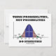 Muestra humor educacional irónico con cualquiera de estos regalos que presentan la curva de distribución normal (también conocida como curva campana o curva gaussiana), junto con el dicho "Piensa en Probabilidades, No Posibilidades - Hacer Estadísticas". No necesita ser estadístico o especialista en estadística para disfrutar! Regalos psicológicos para todos los realistas que entienden lo importante que es pensar en términos de probabilidades y no posibilidades!