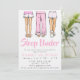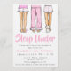 Invita a amigos a un Sleep Under acogedor y elegante con esta invitación de fiesta de pijamas trendy, perfecta para preadolescentes que aman divertirse sin quedarse a dormir. Con una ilustración chic de tres chicas de moda de la cintura para abajo con pantalones de pijama con volantes, pantalones de pijama con borde esponjoso y zapatillas o botas de peluche, este diseño establece el tono para una noche llena de risas y recuerdos.