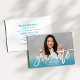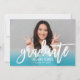 Celebra a tu graduado con esta vibrante invitación de fiesta de graduación que presenta un texto superpuesto con un efecto de degradado de color teal en una foto de un estudiante de último año con un texto en letra blanca y negrita que dice "graduado". La parte trasera mantiene los detalles de la fiesta frescos con tipografía teal coordinada en un fondo blanco limpio. El texto totalmente personalizable en ambos lados hace que la personalización sea sin esfuerzo.