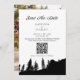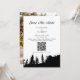 Invitación de boda con código QR de Pine Tree Mountain para guardar la fecha. Personalice este diseño en blanco y negro con sus datos personales.