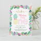 Esta encantadora invitación se caracteriza por las flores tropicales de acuarela pintadas a mano y el confetti falso purpurina de oro.