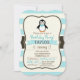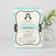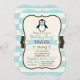 Invitación Pingüino lindo con Bowtie turquesa