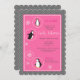 Pingüinos lindos rosados chica invitación a ducha de bebé - puntos grises