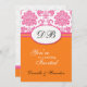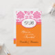Invitación Pink and Orange Damask Monogram Wedding Invitation