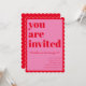 Invitación Pink and Red Modern 21st Scalloped Birthday Party