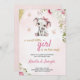 Invitación Pink baby shower invitation with a cute elephant