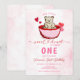 Invitación Pink Bear Sweetheart Valentine 1st Birthday