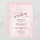 This beautiful wedding invitation features a boho chic design with a gorgeous pastel cotton candy blush pink watercolor floral background of peony flowers or wild roses. It includes fancy script lettering with elaborate flourishes decorating the word "wedding" and the names of the bride and groom prominently displayed in block lettering. Simple, stylish, and glam, this invitation is a lovely way to invite your friends and family to share in your joy on your special day. Perfect for a spring wedding.