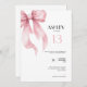 Invitación Pink Bow 13th Birthday Invitation for Girls