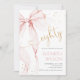 Pink Bow 80th birthday invitation. Modern feminine design in blush pink and gold. Features trendy watercolor coquette bow, and heart script font "eighty". Perfect for an elegant style women's bday celebration. Personalize with your own details. Printed Zazzle invitations or instant download digital printable template.