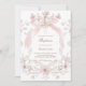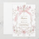 Invitación pink bow and flowers frame Baptism girl