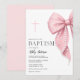 This invitation features a soft pearl pink color palette, symbolizing warmth, purity, and elegance. At its heart is a delicate bow, adding a touch of femininity and charm. Matching items available.