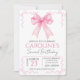 A pretty pink coquette ribbon with a ribbon border. An adorable theme for your little one's birthday party.