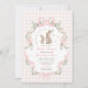 Invitación Pink Bow Bunny Gingham Floral Girl Baby Shower