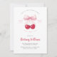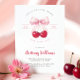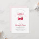 Celebra la ducha más dulce con esta invitación a Baby Shower de cereza rosada. Con sus pintadas de agua brillante y su delicado arco rosado, el diseño de esta coqueta exuda encanto y feminidad. La suave paleta rosa y roja y el guión elegante hacen que sea perfecto para una ducha de bebé elegante y alegre para una niña.