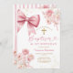 Invitación Pink Bow Coquette Girl Baptism and Birthday Floral