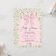 Celebrate your little princess with this elegant pink bow baby shower invitation featuring a soft pastel background, delicate floral pattern, and a charming ribbon illustration. Designed with modern script typography and a timeless layout, this invitation is perfect for baby girl showers, spring celebrations, and sweet at-home gatherings.