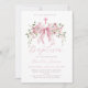 Invitación Pink Bow Floral Coquette Girl Baptism