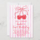 Invitación Pink Bow Fruit Sweet Cherry First Birthday