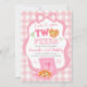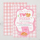 Invitación Pink Bow GinghamLove you TWO pizza birthday