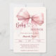 A soft beige, cream background, decorated with a large pink bow. For celebrating a baby girl. Personalize and add a name and party details.