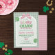 Invite your friends and family to shower the mom to be of a little lucky charm! With a pretty pink bow at the top of an arch-shaped background, a lucky horseshoe in the word Lucky, and two four leaf clovers for extra good luck. The details are drawn digitally by hand. The background is a cottagecore cute gingham pattern in sage green.