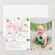 Invitación Pink Bow Lucky One Shamrock Clover 1st Birthday