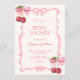Invitación Pink bow ribbon cherry bridal shower