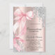 Invitación Pink Bow Silver Glitter Drips Rose GoldQuinceañera