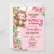 Invitación Pink Cheeky Little Monkey Savannah Theme Birthday