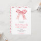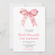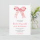 invitación a la fiesta de cumpleaños con una cinta rosada de arco de coqueta. Las palabras se pueden cambiar para adaptarlas a sus propios detalles o requisitos