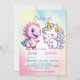Invitación Pink Cute Unicorn dinosaurios arco iris Fiesta de