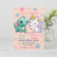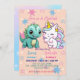 Invitación Pink Cute Unicorn dinosaurios arco iris Fiesta de