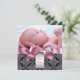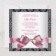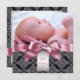 Elegante damasco rosa y negro con arco rosado bonito bebé foto bautismo y invitación a bautizar. Esta elegante invitación al bautismo y al bautismo con damasco rosa se personaliza fácilmente para tu evento simplemente eligiendo el botón "Personalizar it!" para empezar a añadir tu foto, detalles del evento, estilo de fuente, tamaño y color de fuente, y redacción. Por favor, tenga en cuenta que todos los pegatinas, tarjetas y diseños de invitación que encontrarás en Zazzle son gráficos impresos sin joyas, arcos, arcos, grabados en relieve o piezas añadidas. com.